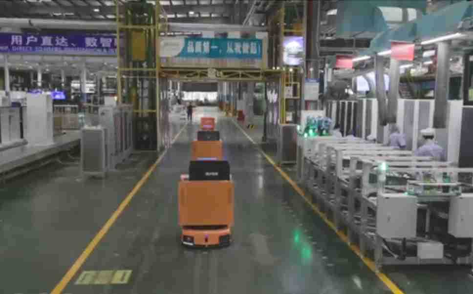 为车载冰箱物流配送打造的智能解决方案,,包含产中物流通过潜伏举升AMR搬运至线边,,,,产后成品物流智能仓储,,,流程包含产中物流智能齐套入库,,,线边安灯叫料AMR智能配送至线边,,成品入库、、、出库,,,通过无人堆高车机器人,,智能仓储管理替代人工作业管理,,,实现更高存储、、、更高效率、、更具柔性化的解决方案。。。